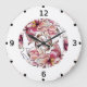 Burgundy Pink und Blue Floral Garland Wasserfarbe Große Wanduhr