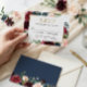 Burgundy Red Blue Blush Bloral Wedding RSVP Karte