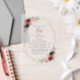 Mit dieser charmanten Babydusche laden Sie Freunde und Familie in Stil und Set zu einem erlebnisreichen Tag ein. Das Design ist bordeauxrot und rot, die Blume sind in Rosa gehalten, die Gärten und der goldene Rahmen.