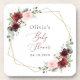 Fügen Sie Ihrer Babydusche mit diesen stilvollen und unvergesslichen Party eine persönliche Touch hinzu! Das Design ist bordeauxrot und rot, die Blume sind in Rosa gehalten, die Grünflächen und der goldene Rahmen auf weißem Hintergrund.