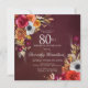 Burgundy Red Fall Blume Script 80. Geburtstag Einladung