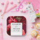 Diese eleganten bordeauxroten und goldblühenden Hochzeitspapier-Teller können mit Ihren Informationen in der modernen Typografie personalisiert werden. Entwickelt von Thisisnotme©