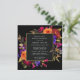 Elegante und kühne, moderne Blumenpracht mit lila, orangefarbenen und bordeauxroten Blume auf schwarzem Hintergrund. Dieser kühne botanische Rahmen umgibt einen runden goldenen Rahmen. Ihre Brautparty-Details sind hell weiß. Auf der Rückseite der Einladung befindet sich eine LIEBE, die in dekorativen Buchstaben geschrieben und mit Blume geschmückt ist. Diese Einladung zum Bridal-Mittag ist Teil der Midnight Brautparty Collection. Wenn Sie Hilfe bei der Suche nach passenden Artikeln benötigen, schreiben Sie mir einfach.