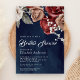 Burgundy Red Roses Floral Navy Blue Bridal Shower Einladung