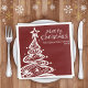 Burgunder Rot und Weiß Weihnachtsbaum für ein Weihnachtsessen Party Servietten mit einer niedlichen whimsical Spaß Party Einladung für eine festliche Feier.