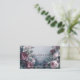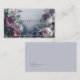 Define your brand with the dramatic elegance and rich romance of a hidden twilight garden using this captivating business card. The design is dominated by an abundant, layered wreath of vintage-style roses and wild foliage. The striking palette features large blooms in deep velvety burgundy, rich mauve, and soft blush pink, contrasted beautifully by cool, dark teal and slate blue foliage. The background is an ethereal, swirling mist that fades into a pale gray center, accented with subtle gold flecks and magical light, creating a sophisticated, moody atmosphere. A thin, elegant metallic gold rectangular frame sits centrally, providing a refined, luxurious space for your key information and drawing the eye into the design. This business card is ideally suited for a luxury candle or perfume artisan specializing in deep, complex, atmospheric scents, a boutique hotelier wanting to convey a picturesque, sophisticated setting, or a vintage fashion curator whose collection is inspired by dark romance. It would also perfectly suit a high-end event stylist specializing in moody, ethereal celebrations or a bespoke floral designer known for rich, abundant arrangements.