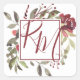 Burgundy Rose Square Monogram Aquarell Quadratischer Aufkleber