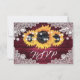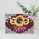 Burgundy Rustic Wood Lace Sunflower Wedding RSVP Karte
