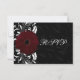 Die niedliche und klassische rsvp Kartensammlung zeichnet sich durch einen schwarzen Hintergrund mit feinen, wirbelnden Rollen und ein lebendiges, weißes, wirbelfarbenes Vordergrunddesign mit bordeauxroter, gerbera-farbener Blume aus. Perfekt elegant für eine Winterhochzeit, oder zu jeder Jahreszeit.