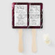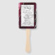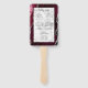 Dieser elegante, moderne Hochzeitsfan besticht durch einen bordeauxroten Hintergrund mit silberfarbenem Imitat-Glitzer. Der Text erscheint in elegantem Schwarz-Handschrift und auf einem Rechteck aus grauem und weißem Marmor mit Kupferplatte.