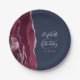 Burgundy Silver Agate Navy Blue Wedding Pappteller