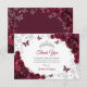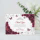 Burgundy silver Quinceanera celebration thank you card. Features, script font, butterflies, watercolor roses and tiara. Perfect for an elegant princess style glam celebration. Personalize with your own details.