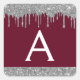Burgundy Silver Sparkle Glitzer Monogram Quadratischer Aufkleber