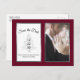 Frag deinen Gästen, ihr Hochzeitsdatum mit diesem schlicht eleganten Design retten, das mit Foto, modernem Drehbuch, schwarzem Text und einem silbernen Weihnachtsbaum gerahmt in metallischem Silber auf bordeauxrotem Hintergrund. Passen Sie es mit Ihrem Foto, Hochzeitstag, Namen und Ort auf der Vorderseite zusammen mit Ihrer Nachricht, Namen und Rücksendeadresse auf der Rückseite an.