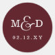 Burgundy Simple Modern Monogram Wedding Runder Aufkleber