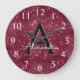 Burgundy Sparkle Shimmer Monogram Name & Initial Große Wanduhr