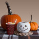 Feiern Sie Halloween mit diesen Papiertassen, die ein nahtloses Muster aus orangefarbenen Monden, Kürbissen, Skeletten und unheimlichen Halloween-Figuren aufweisen. Ideal für Party, unheimliche Ansammlungen oder Gothic-Events.