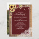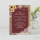 Burgundy Sunflower Wood Script Lace Foto Wedding Einladung