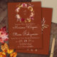 Burgund beige Blumen auf Terrakotta Kranz Hochzeitseinladung für eine romantische Hochzeitseinladung.