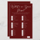 Ein elegantes Bordeaux-Brautparty-Spiel Was ist in Ihrer Geldbörse für ein Abend-Party. Personalisieren Sie diese trendigen Papierblätter mit Ihren eigenen Punkteoptionen für Ihre Freunde. Ein lustiges, individualisierbares Junggeselinnen-Abschied-Spiel mit minimalistischem Farbschema.