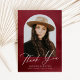 Eleganter Abschluss Dankeschön-Karte mit dem Foto des Absolventen in einem Bogen-Rahmen mit bordeauxfarbenem Hintergrund. "Danke" wird in einer weißen, modernen Kalligraphie-Skript mit dem Namen, der Schule und dem Abitur angezeigt, wie unten gezeigt. Auf der Rückseite des Foto Abschluss Dankeschön-Karte gibt es Platz für Ihre getippte oder handgeschriebene Nachricht.