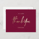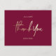 Danke Custom burgundy Kirschwein red Weddings Card ohne Fotos. Hochzeit Dankeschön Karten, Elegant Moderne Kalligraphie Script Text Postkarten in Imitats bronze metallische Folie.