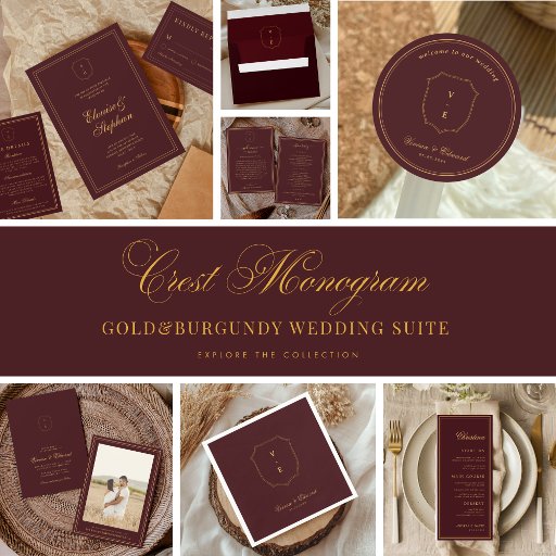 Luxe Crest Monogram Burgundy & Gold Wedding SuiteDesignt von Anastasiya S.