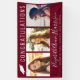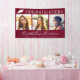 Elegant burgundy red graduation party welcome banner and foto backdrop to celebrate the graduate with "Congratulations" in large white typography and an illustration of a white graduation cap on top, athree foto, me name in a stylish white script, and class year and school name in simple modern white typography. Change the colors of the background and typography to your school colors by editing in the design tool.