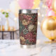 Burgundy William Morris Floral Elegant Monogram Thermobecher