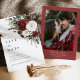 Burgundy Winter Floral Photo Back Wedding Save The Date