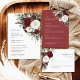 Matching items available including wedding invitations, RSVP cards, details cards, table numbers, menus, programs, place cards, and coordinated reception signage in the same burgundy floral collection.