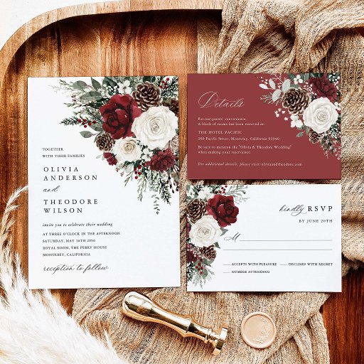 Burgundy Winter Floral Watercolor Wedding SuiteDesignt von K Lily