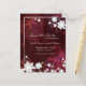 Elegante und niedliche Blume, Wirbel, weiße Schneeflocken und texturierter Hintergrund in Merlot-Weintönen, die auf maßgeschneiderten HochzeitsSave the Date Postkarten entworfen wurden. ((Sie finden die passenden Hochzeitsessentials & Favoriten in diesem Laden, Bridal Heaven. Wenden Sie sich an ujean4791@gmail.com, um sich mit der Arbeit und/oder der Koordinierung von Hochzeitsaufträgen zu befassen.)