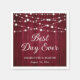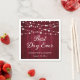 Diese bordeauxroten, rustikalen Servietten aus Hochzeitspapier mit einem Holzboden, der mit Lichtern aus Streichholz geschmückt ist, sind ideal für eine burgundische rustikale Hochzeitsfeier, einen Hinterhof oder eine Scheune. Diese Servietten können Sie ganz einfach mit Ihren Hochzeitsdetails personalisieren.
