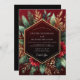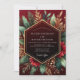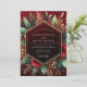 A rich tapestry of deep burgundy, emerald green, and burnished gold botanical elements creates a luxurious and festive mood. This design evokes the spirit of an enchanting woodland, perfect for a winter celebration. It features opulent poinsettias and lush pine boughs.