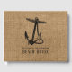 Trendy burlap Grafik Gästebuch mit einem Vintagen Anker, der auf Ihre Bedürfnisse angepasst werden kann. Der Einbruch wird im Kunstwerk simuliert und bei der Herstellung dieses Produktes wird kein tatsächlicher Einbruch verwendet.