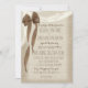 Kaskadierende Burlbogen und weiße Spitzen, rustikale Landzauber Einladung Hochzeit in warmen braunen Tönen.