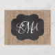 Burlap Chalkboard Look Triple Mit Monogramm Script Postkarte