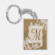 Burlap Country Lace Applique Rustic Fabric Print Muster Monogram Initial Personalisiert Key Chain