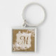 Burlap Country Lace Applique Rustic Fabric Print Muster Monogram Initial Key Chain