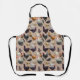 Diese Schürze passt in jede Landhauskultur oder Bauernhausküche. Es verfügt über einen hessischen Burlap-Hintergrund und eine Sammlung von Hühnern im Hinterhof.