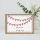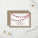 Eine lässige Hochzeit speichern Sie das Datum mit einer Illustration der roten Gingham bunting über eine Spitze inspirierten Design. Der Background auf Vorder- und Rückseite ist ein Einbruch und Spitze inspiriert.