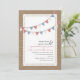 Eine lässige Hochzeitseinladung mit einer Illustration der Bundung, die rot Gingham, beige mit weißen Zickzacksack und blau mit weißen Punkten über eine Spitze Design auf der Vorderseite. Der Hintergrund auf Vorder- und Rückseite ist inspiriert. Personalisieren Sie den Text mit Einzelheiten Ihrer Veranstaltung.