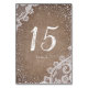 Burlap Lace Glitzer rustikale Hochzeitskarte Tischnummer