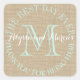 Burlap Monogram Best Day Quadratischer Aufkleber