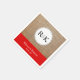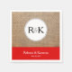Diese einfache und moderne Hochzeitsserviette zeichnet sich durch einen weißen Kreis mit dem Monogramm der Braut und Bräutigam auf einem Foto mit Burlhintergrund aus. Auf einem roten Hintergrund am unteren Ende des Textes finden Sie die Namen der Braut und des Bräutigams sowie deren Hochzeitstermin.