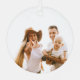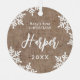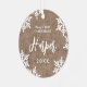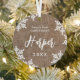 Personalisierte Weihnachtsschmuck mit elegantem Baby-Namensschild und Schneeflocken auf rustikalem burlap-Hintergrund, optionales Paar Foto auf der Rückseite, modern und einfach.