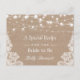 Rustikale Burlap String Lights Spitzen Brautparty Rezeptkarte. Für weitere Anpassungen klicken Sie bitte auf den Link "Weitere Anpassung" und verwenden Sie unser Design-Tool, um diese Vorlage zu ändern.
