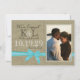 Das Aussehen eines Einbruchs mit einem hübschen blauen Bogen und Foto. Textänderungen, Schriftart und Textfarben je nach Bedarf.