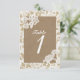 Burlap & White Floral Lace Rustic Tischnummer Card. Suchen Sie in meinem Geschäft nach passenden Artikeln.